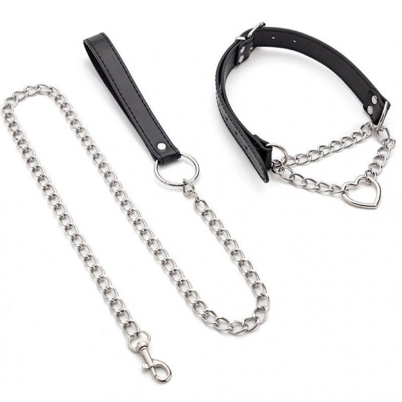 Металлический поводок с петлей из экокожи крепится при помощи карабина непосредственно к сердечку!